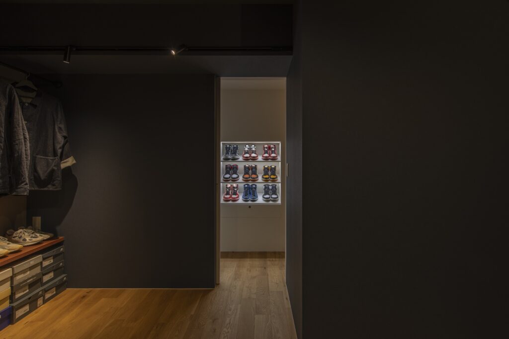 リビングか個室か。白か黒か。ではなく同じリビングにいるけどなにをしているかわからない。目の前でごろごろではなく少し上の方でごろごろしている。このグレーゾーンの空間が家族の成長を大きく包んでくれるだろうと考えています。