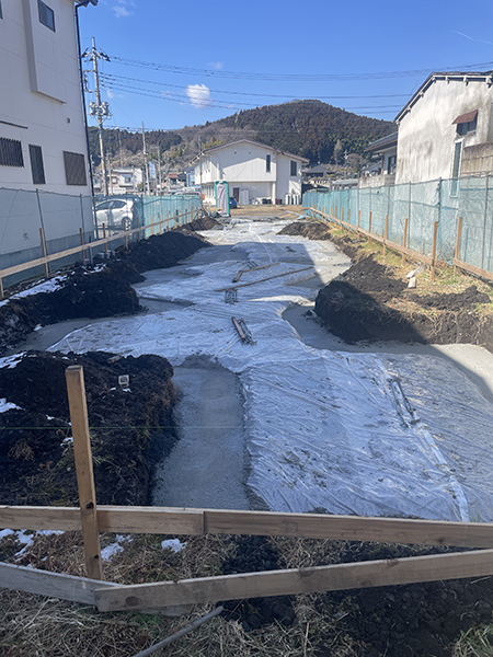 価格高騰の中、当初の予定より少しオーバーはしましたが建主さん、および建設会社さんのご協力もありなんとか無事着工することができました。ほっと一安心です、が休む間もなく工事着工です!